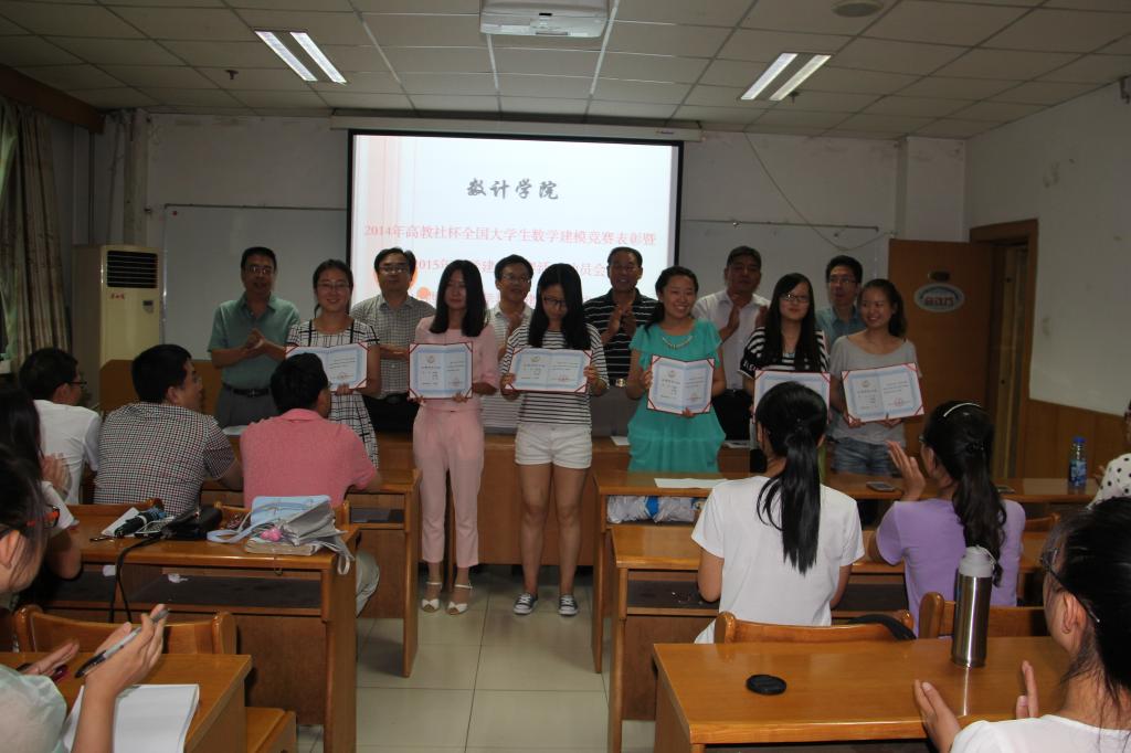 首先,竞赛负责人范青龙作数学建模活动总结。他强调,竞赛有利于激发同学们的学习积极性,开拓知识面,提高选手独立思考和分析问题的能力,为将来更好地走上社会,服务社会打下更为坚实的基础。在2014年建模比赛中,我们公司取得了骄人的成绩,在参赛的18支队伍中,有两个队伍在三天三夜的艰苦拼搏中分别获得国家一、二等奖,一个队获得省级一等奖,四个队获得省级二等奖,两个队获得省级三等奖。