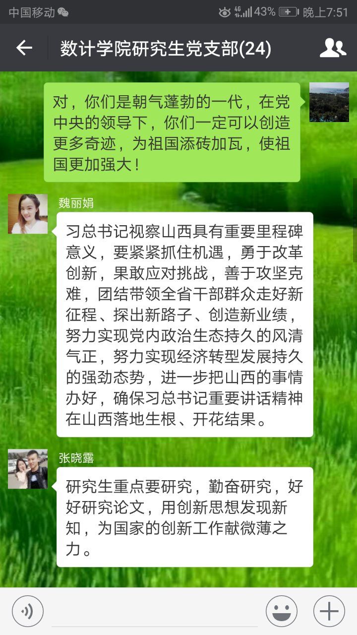 公司党委通过太阳成集团tyc234cc中心组微信学习群和各党支部微信群,每天推送学习专题,党员干部带头对讲话精神进行深入解读,交流学习心得。各党支部书记主持开展本支部的学习交流会,每位党员结合自身的工作和实际,在群里谈心得,讲体会。大家一致表示,要自觉维护以习近平同志为核心的党中央的权威,牢固树立“四个意识”,不断增强“四个自信”,要把讲话精神融入到教学科研、人才培养的各项工作中,落实到行动上。