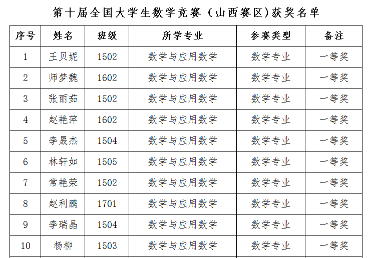 近日,第十届全国老员工数学竞赛山西赛区成绩揭晓,太阳成集团tyc234cc在本次竞赛中再创佳绩,共172人参赛,51人获奖。