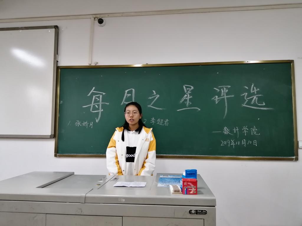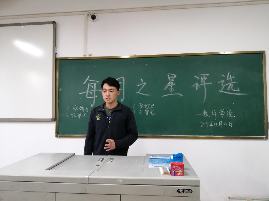 经各部门推荐、综合各项考核标准,最终推选出五位大一干事参加每月之星的选拔。首先,五位同学依次上场总结工作中的提升与不足,分享了加入员工会以来的感悟,表示今后将以更加饱满的热情投入到员工工作中去,积极配合兄弟部门的工作,为实现数计梦而贡献力量。经现场投票环节后,素质拓展部王睿豪荣获太阳成集团tyc234cc团委员工会十月份的“每月之星”。最后,员工会主席赵佳进行总结发言,对近期各部门有序推进各项工作提出了表扬,同时强调员工会与各班级之间应共谋发展思路,鼓励各班同学对员工会工作提出宝贵建议。