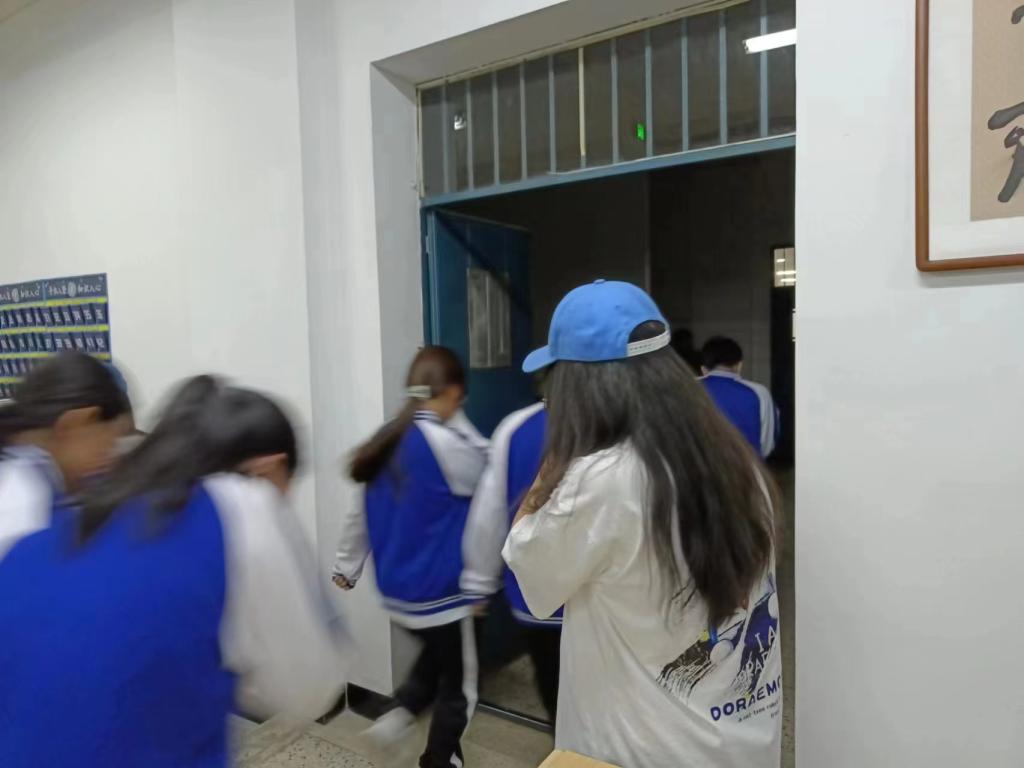 演练正式开始,警报响起后自律权益部志愿者引导应急消防队员有序撤离,到集合点集合。到集合点后自律权益部志愿者向应急消防队员们列举真实案例,并介绍关于消防的各种安全防范知识。