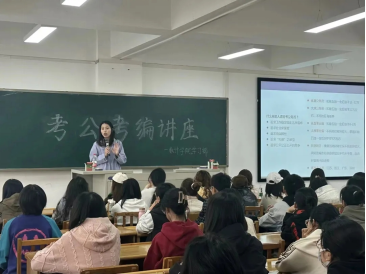 活动中,张丹老师从公考考情、公考岗情、面试技巧等方面进行了详细讲解。同时从国考和省考的不同特点入手,详细分析了历年考试真题,列举了大量成功案例。她指出,在复习中要多关注国家政策走向,关注时事新闻,把握时代脉搏,努力在日常学习生活中锻炼自己的人际交往、应急应变、语言表达等能力,不断提升综合素质。讲座过程中,张丹老师还分享了一些她在公务员考试中的心得体会,为同学们提供了宝贵的参考。