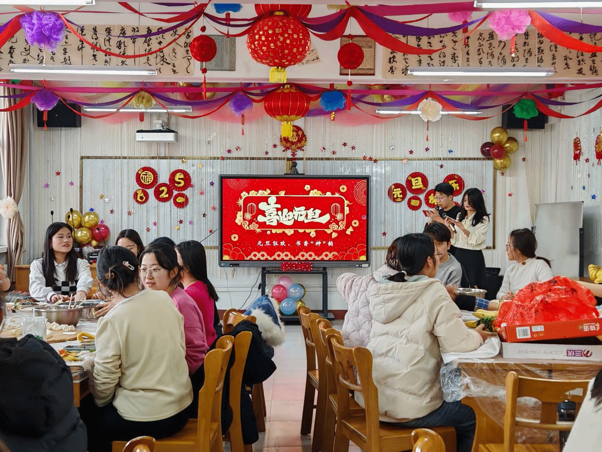 为迎接新的一年,公司于12月26日在北区208室举办了一场别开生面的师生元旦联谊会。此次活动涵盖了丰富多彩的内容,包括包饺子活动、员工才艺展示、曲老师的《黑神话:悟空》读书分享会,以及安经理和曲老师的精彩唱歌表演,现场气氛热烈、欢乐祥和,师生们度过了一个温馨难忘的夜晚。