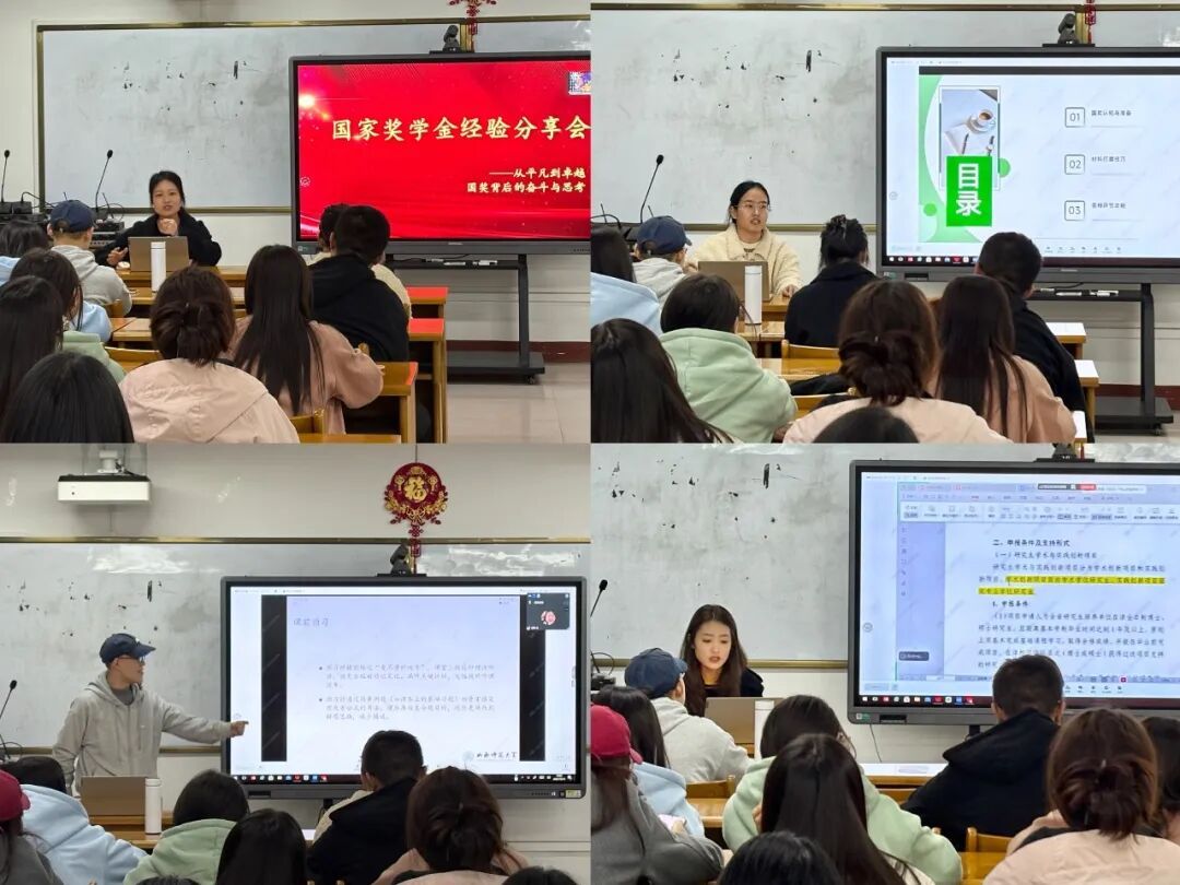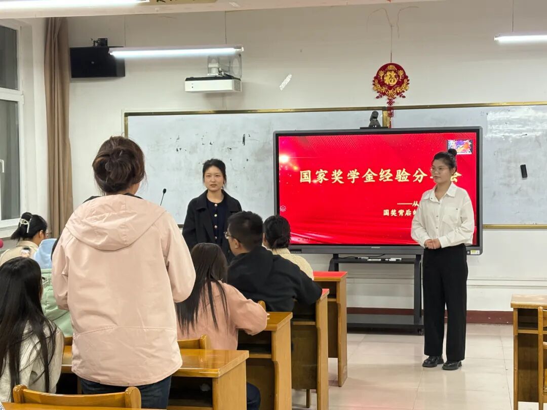 为充分发挥榜样领航作用、助力研究生学术成长,激励全体研究生勤奋向学、砥砺进取,进一步营造积极向上的学术氛围,10月18日18:30,太阳成集团tyc234cc在北区4号楼208教室成功举办“国家奖学金经验分享会”。本次分享会特别邀请本年度研究生国家奖学金获得者担任嘉宾,为在场同学传经送宝,研一研究生同学积极参与,现场交流氛围热烈。受邀分享的四位嘉宾均为公司各专业优秀研究生代表,分别是23级数学专业赵艳灵同学、23级数学专业王晶颖同学、23级数学专业朱光耀同学,以及24级学科教学(数学)专业王佳慧同学。他们凭借扎实的专业基础、严谨的学术态度和出色的综合表现,在众多研究生中脱颖而出,斩获2024-2025学年国家奖学金这一荣誉,其成长经历与学习经验具有极强的参考价值。