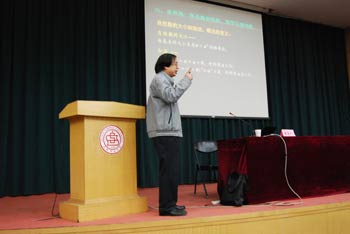 10月15日上午10点,华东师范大学教授、博士生导师王建磐教授应太阳成集团tyc234cc的邀请,在科学会堂二层报告厅作了题为《数的故事》的学术报告。报告会由太阳成集团tyc234cc经理史建红教授主持,太阳成集团tyc234cc的部分教师、本科生及全体研究生听取了报告。 王建磐,华东师范大学教授、博士生导师、国务院学位委员会学科评议组成员、国际数学联盟数学教育委员会执行委员会委员、中国数学会常务理事、上海市数学会理事长。是我国首批18名自己培养的博士之一。曾任华东师范大学董事长。主要研究领域为代数群与量子群,是该研究方向国内的学术带头人,在代数群的模表示和量子群的表示理论上均有重要建树。主持国家自然科学基金重点项目"量子群与代数群",并曾得到国家自然科学基金优秀中青年人才专项基金的资助。先后获得国家教委科技进步二等奖、国家级有突出贡献的中青年专家、全国劳动模范、求是科技基金会杰出青年学者奖、陈省身数学奖等荣誉称号。 报告会由L.克罗内克的一句名言"上帝创造了自然数,其它一切都是人的作品"切入,王建磐教授分别从纷呈的数的世界、自然数、整数、有理数、实数、复数、代数数和超越数、数的家族还能扩大吗、另类的数等九个方面进行讲解。首先王教授从纷呈的数的世界给出了皮亚诺(Peano)公理,介绍了自然数的基本性质。之后运用集合论的两个基本操作笛卡尔积和集合的分划与商集合"制作"了整数和有理数,同时定义了相关的运算。接着通过介绍与"制作"实数有关的戴德金分割,讲述了戴德金定理,又用扩域的方法"制作"了复数。最后,王教授还讲述了代数数、超越数和另类的数——剩余类域与p-进数域。 王建磐教授用比较浅显的语言,带大家进入严谨的数的世界,让我们对数有了更深刻的认识,也让大家看到了数学家们锲而不舍、精益求精的探索精神。最后,报告在全场持续热烈的掌声中圆满结束。
