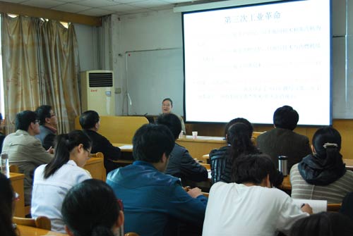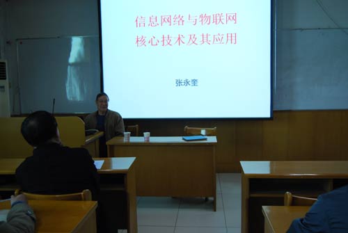 张永奎教授的报告主要分为两部分,他首先从第三次工业革命谈起,说明第三次工业革命的核心为互联网技术与新能源。其次,张教授重点介绍了物联网的概念、物联网技术框架、EPC物联网技术、以及当前物联网技术在国防、物流、农业等方面的应用情况,并对物联网专业良好的社会需求和就业前景进行了分析说明。