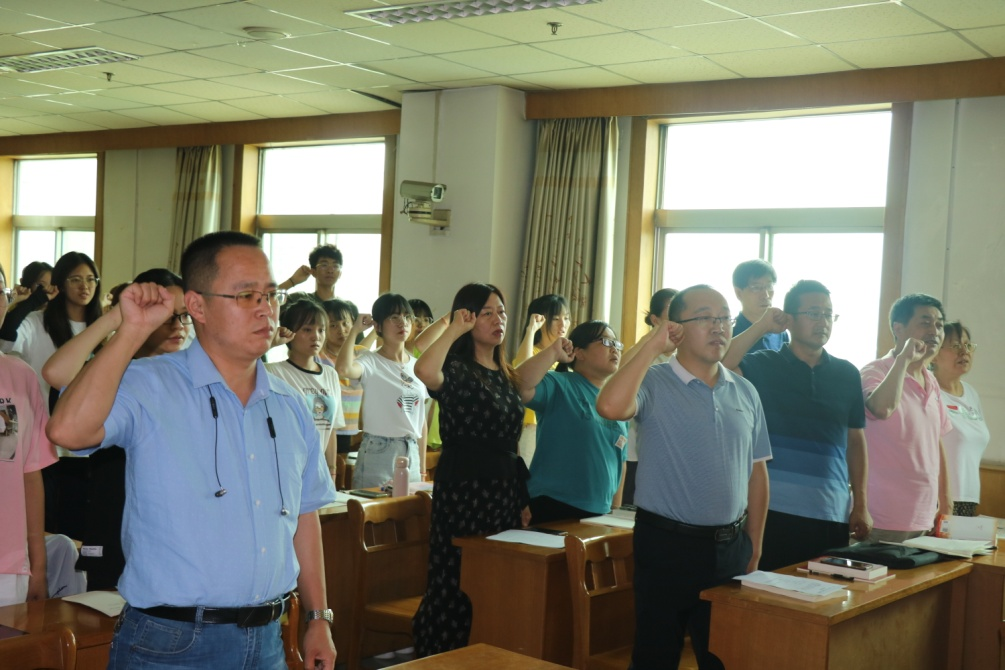 面对鲜红的党旗,全体党员举起右手,在员工第三党支部书记王琛的带领下重温入党誓词。铿锵恢宏的誓词体现了对中国共产党的无限忠诚和为共产主义事业奋斗终身的坚定决心。随后师生党员一起观看了《常州三杰:恽代英》党史学习纪录片,党员们纷纷表示要坚定共产主义的理想信念,向恽代英这样老一辈的革命先烈学习,自觉地为共产主义事业奋斗终身;最后教工党员与员工党员就学业指导、考研规划、学科竞赛活动指导等内容展开讨论交流,教工党员们坚持党建指导实践,把“我为群众办实事”实践活动与立德树人同频共振,在学党史,悟思想,办实事中勇于担当,尽职尽责。